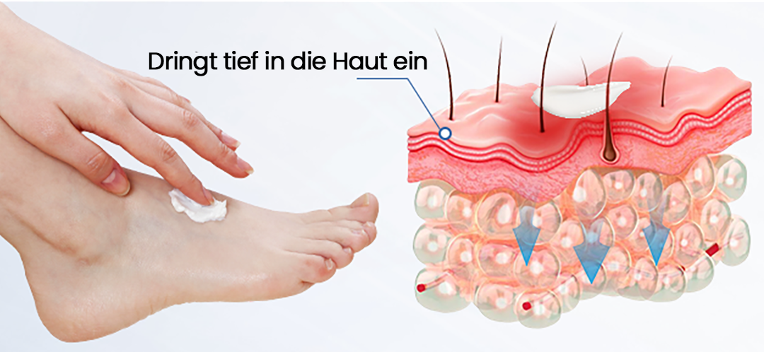 Diese Creme wurde speziell für die tägliche Pflege bei diabetischer Haut entwickelt —besonders bei trockenen, rissigen Füßen, Druckstellen, Spannungsgefühl und Hautreizungen.